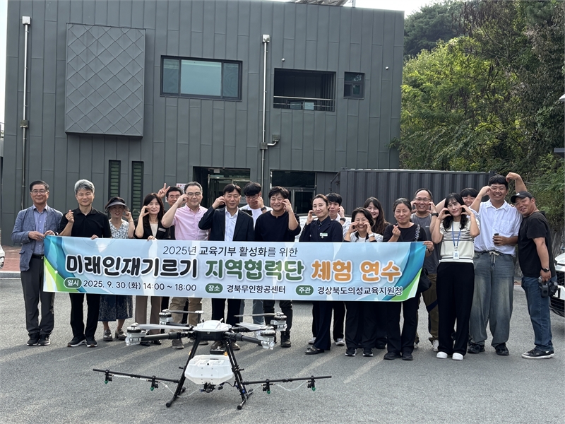 [경북매거진]경상북도의성교육지원청(교육장 이우식)은 9월 30일(화) 14시부터 경북 의성 다인 소재 경북항공무인센터에서 2025년 교육기부 활성화를 위한 미래인재기르기 지역협력단 체험연수를 개최했다. 경북항공무인센터는 교육기부 사례 발표와 함께 의성의 교육기부 사업 현황을 공유하였으며, 4차 산업 기반 초경량 비행 장